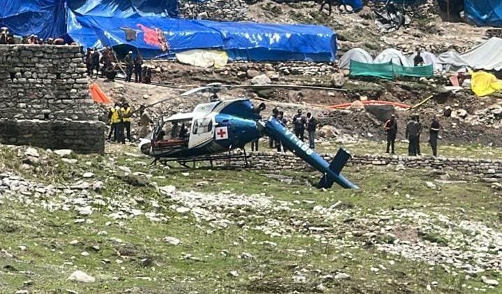 हेली में सवार पायलट सहित एक डॉक्टर एवं एक नर्सिंग स्टाफ थे सवार, सभी सुरक्षित